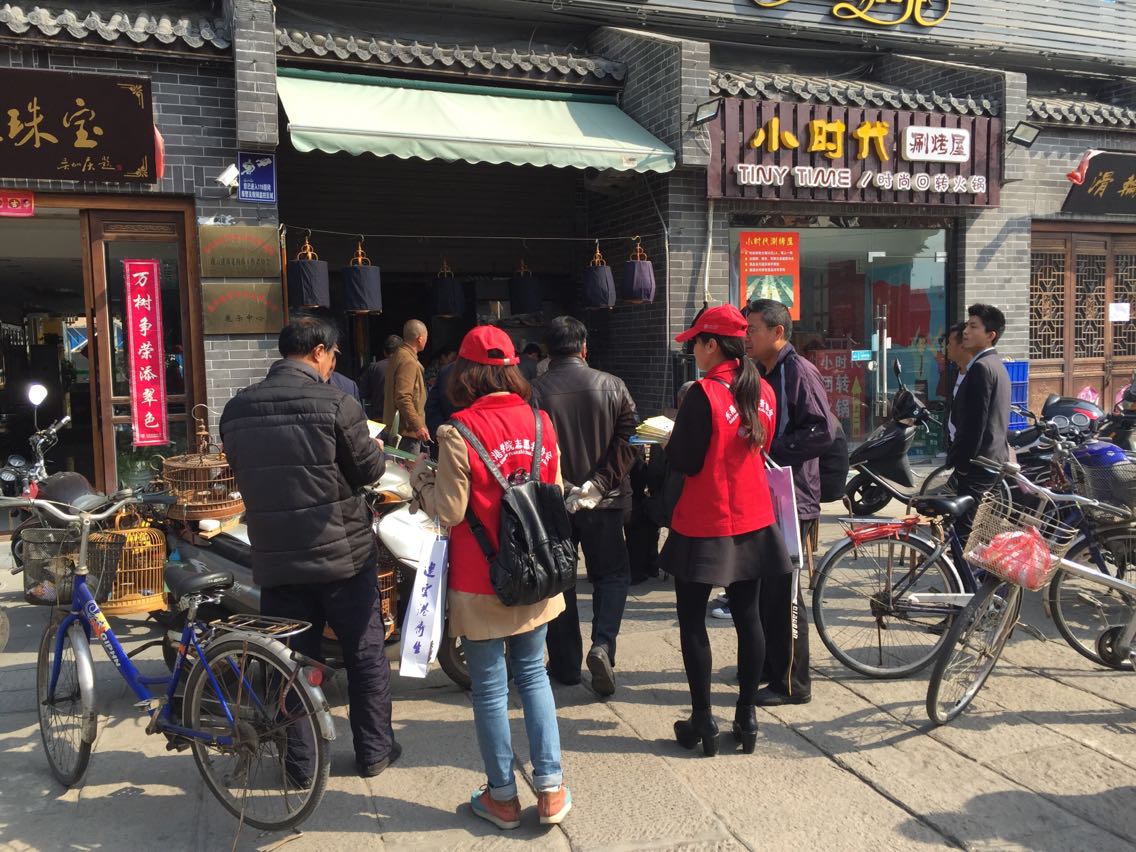 活动开始前,我院志愿者们在莱迪广场门口集合,通过悬挂横幅、摆放展板、发放资料等方式,使居民提高健康生活的意识并能积极参与健康生活方式行动。志愿者们在人口较多的地段发放宣传资料,活动中发现很多居民都会主动去接受宣传资料,这使得活动达到了意想不到的宣传效果。