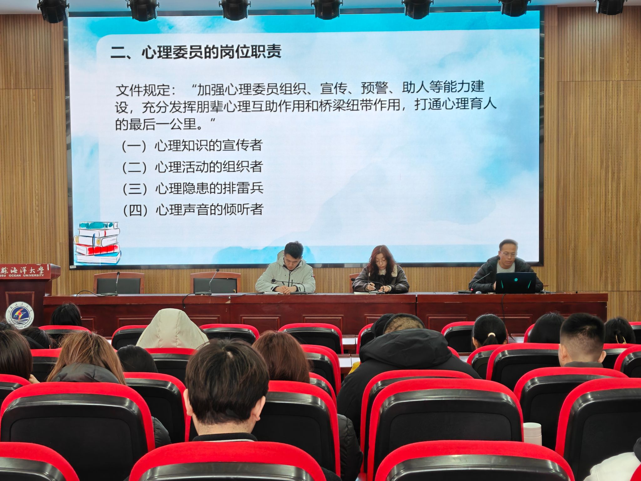 为进一步健全学院心理健康教育工作体系,充分发挥心理委员在朋辈互助中的作用,筑牢班级心理健康防护的第一道防线。3月6日,学院于敦行楼201召开新学期心理委员工作会议,学院辅导员季夕童、邹翔宇、王小蕾出席会议,各班级心理委员参加。