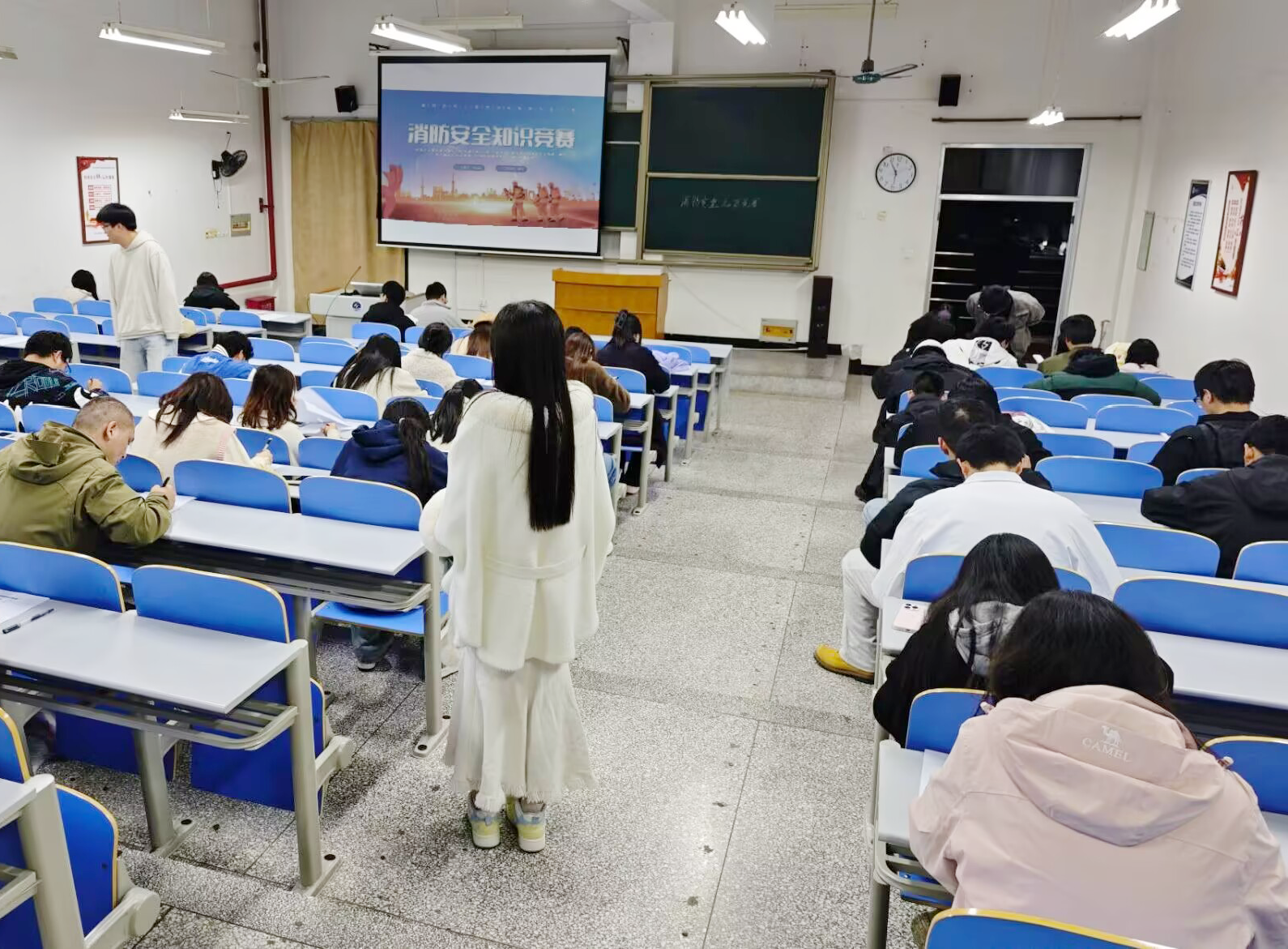 11月12日,在敦行楼115教室,100多名同学参加校园消防安全知识竞赛,把校园生活里的消防知识干货变成趣味答题。