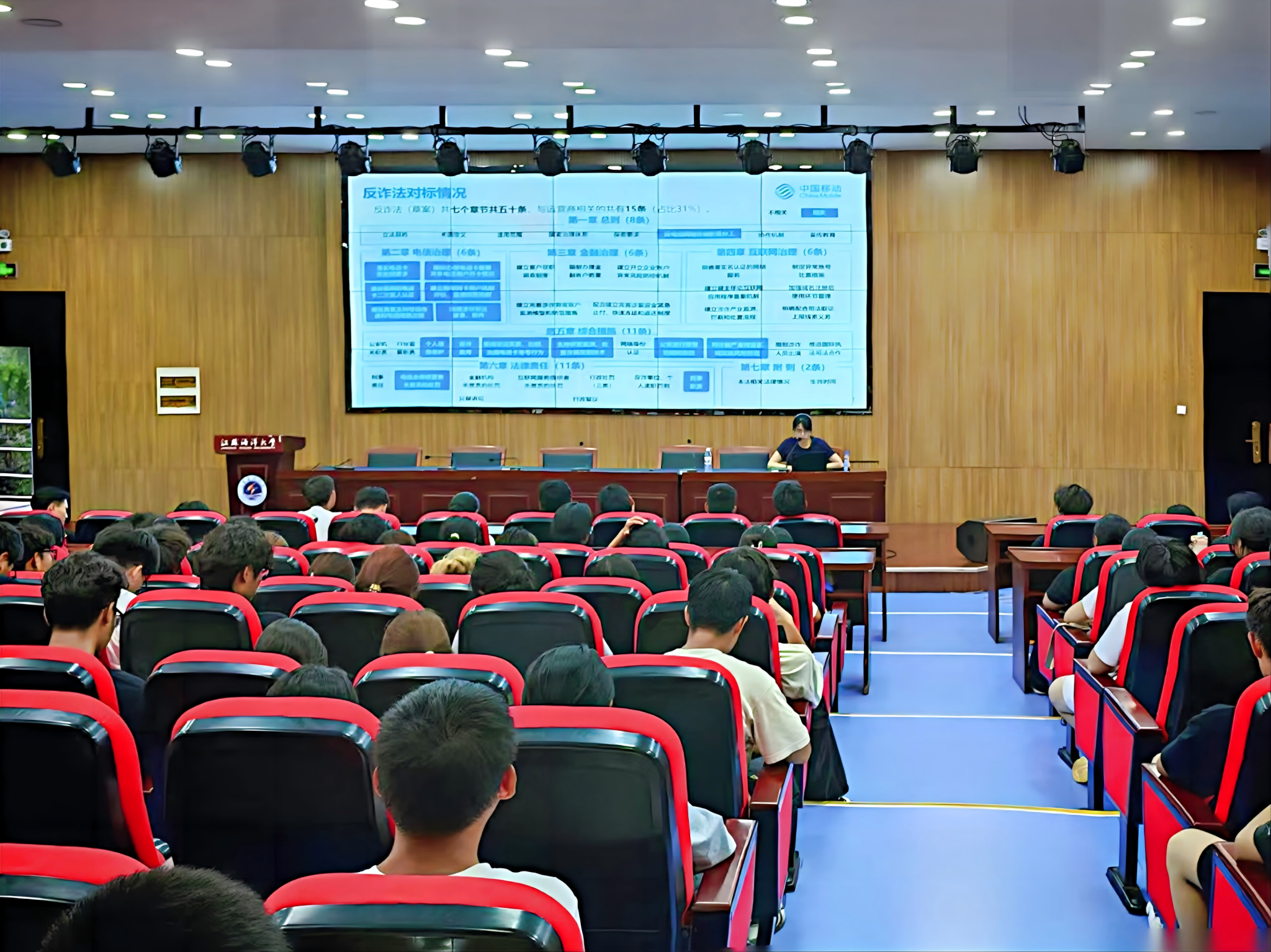 9月16日下午,江苏海洋大学应用技术学院以2025年全省网络安全宣传周校园日为契机,特邀连云港市移动公司网络部信息安全工程师乔甜甜来校,为2025届新生举办防范电信网络诈骗专题教育讲座。此次活动系省教育厅“校园防范电信网络诈骗犯罪宣传月”重点活动,旨在强化师生网络素养与安全防护能力。