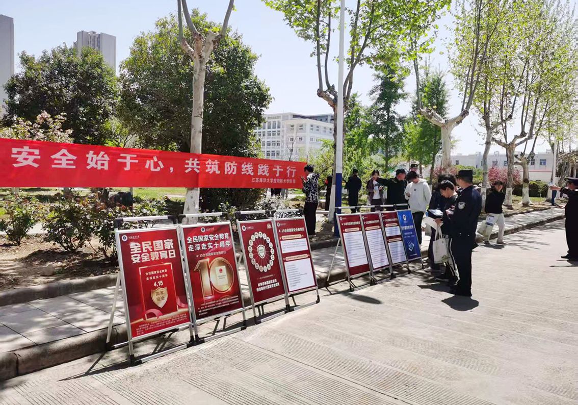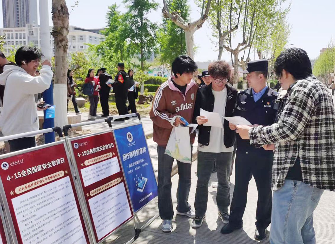 15日上午,学院联合连云港市公安局内保支队和属地花果山派出所开展“校警联动”宣教。在东港餐厅东侧广场举办“国家安全,人人有责”主题宣传活动。活动现场布置了八块图文并茂的国家安全宣传展板,涵盖网络安全、反间谍法、反恐防暴等多个领域。民警通过分发《国家安全知识手册》和宣传单,向师生普及境外渗透、数据泄露等风险防范要点,并现场解答咨询。花果山派出所副所长张习强调:“青年是国家安全的重要力量,必须增强辨别力和责任感。”参与活动的学生表示:“原以为国家安全离我们很远,现在发现日常生活处处关联,今后会更加警惕身边的安全隐患。”