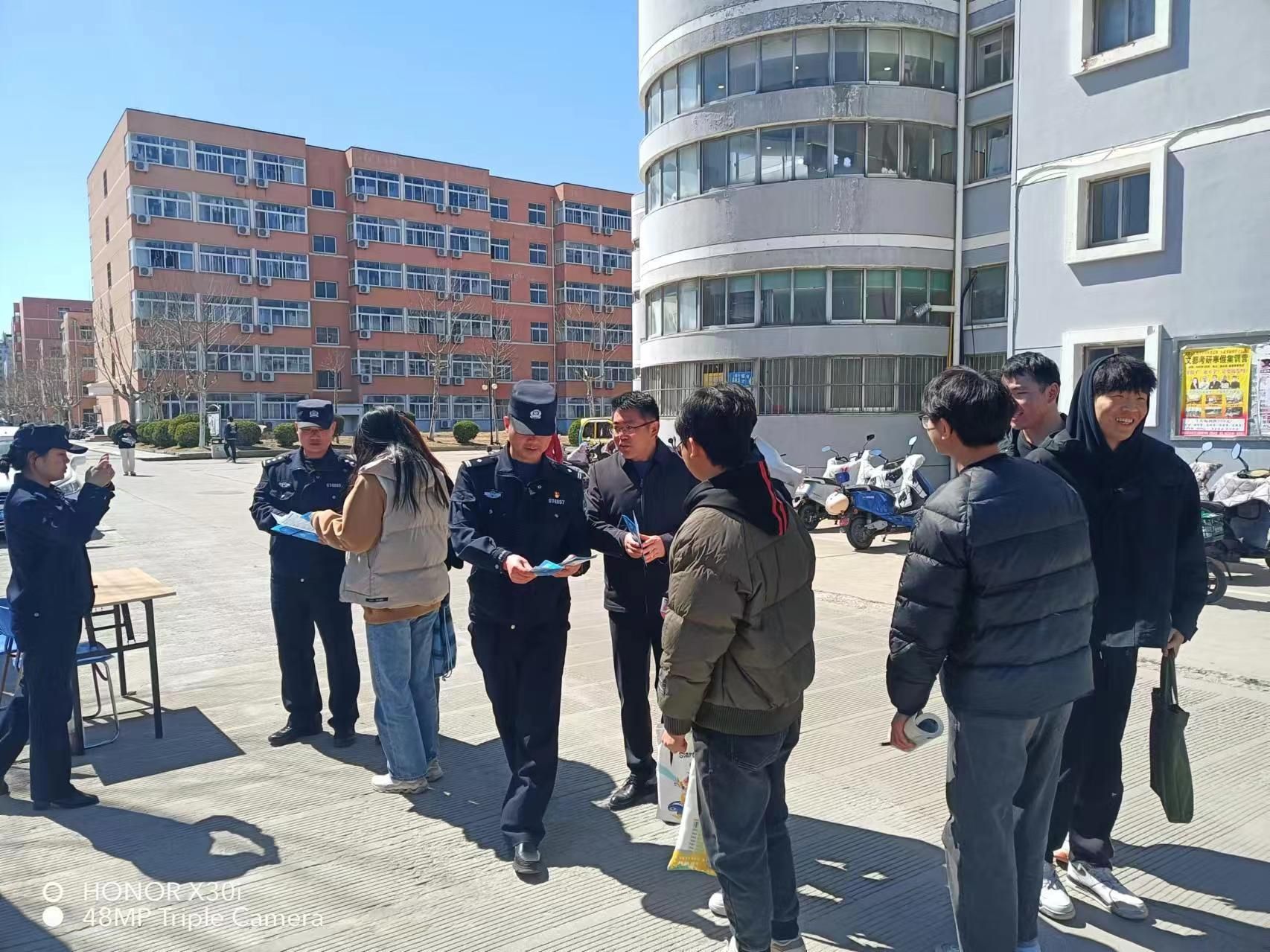 在学院东港餐厅东侧的小广场,民警和学院保卫科工作人员为来往的师生分发《反诈骗简易手册》。提醒大家日常生活中要注意保护好个人隐私,不随意泄露网络账户、银行卡等信息,避免给诈骗犯罪分子可乘之机,及时下载注册“国家反诈中心”APP,进一步筑牢反诈“防火墙”。