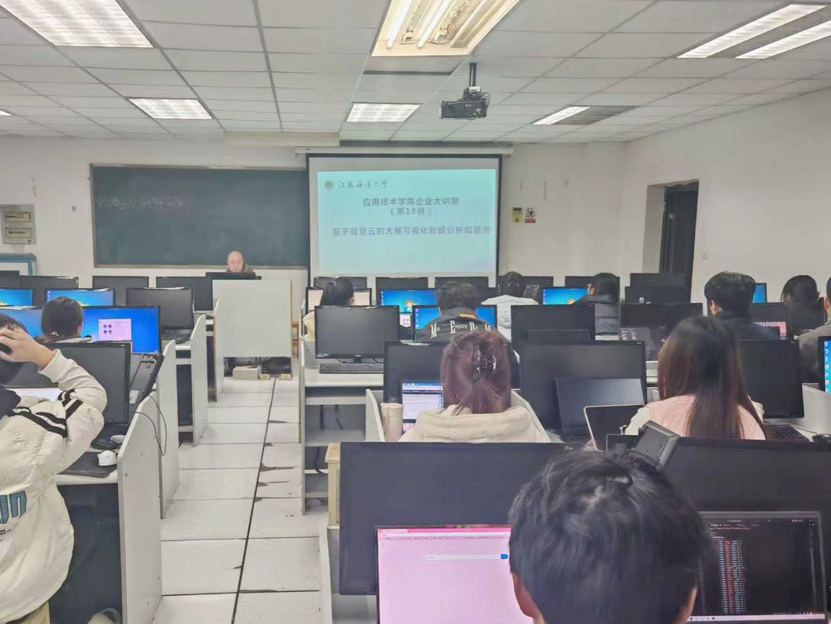 近日,我院企业大讲堂迎来第18场——《基于智慧云的大数据可视化数据分析和展示》。本次讲座特邀江苏极刻知学信息技术有限公司项目经理卢森磊担任主讲,为学院师生带来了一场融合前沿技术与行业实践的精彩分享。