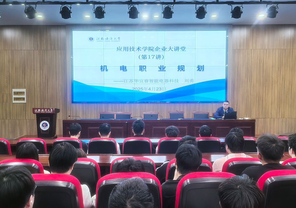 4月23日下午,学院于敦行楼多功能报告厅成功举办“企业大讲堂”第17讲——机电职业规划。江苏华宜睿智能电器科技有限公司副总经理刘勇应邀担任主讲嘉宾,机电机械类专业对口单招学生到场聆听学习。