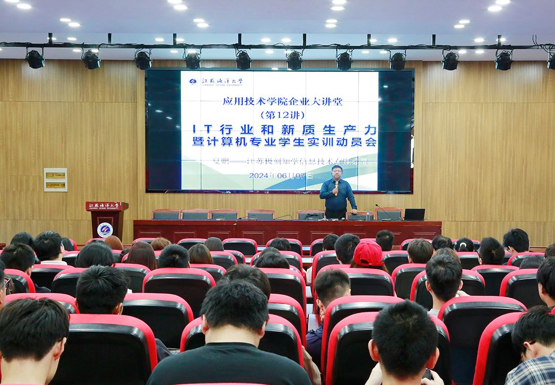 近日,学院在敦行楼201报告厅开展了企业大讲堂的第12讲——“IT行业和新质生产力”暨“计算机专业学生实训动员会”。江苏极刻知学信息技术有限公司董事长夏鹏应邀担任主讲,2021级计算机专业对口单招学生参加。